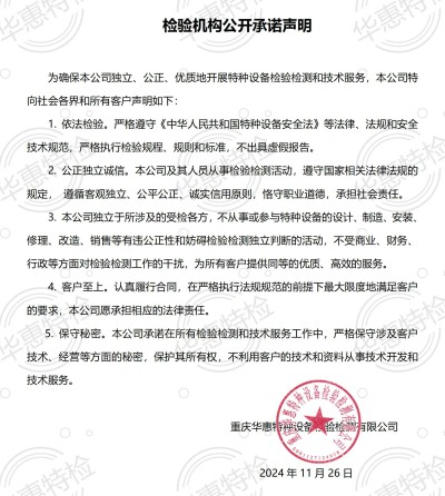 检验机构公开承诺声明